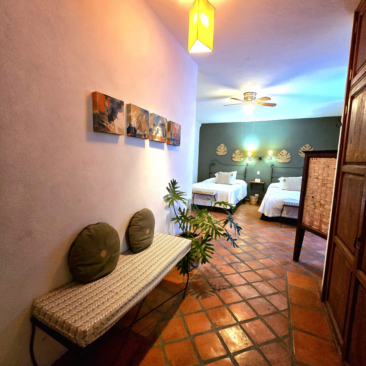 La Nogal Cuádruple es una habitación espaciosa y bien distribuida, ideal para familias o grupos que desean alojarse juntos sin sacrificar comodidad. Su diseño prioriza la funcionalidad y el descanso, creando un ambiente relajado y agradable para compartir.